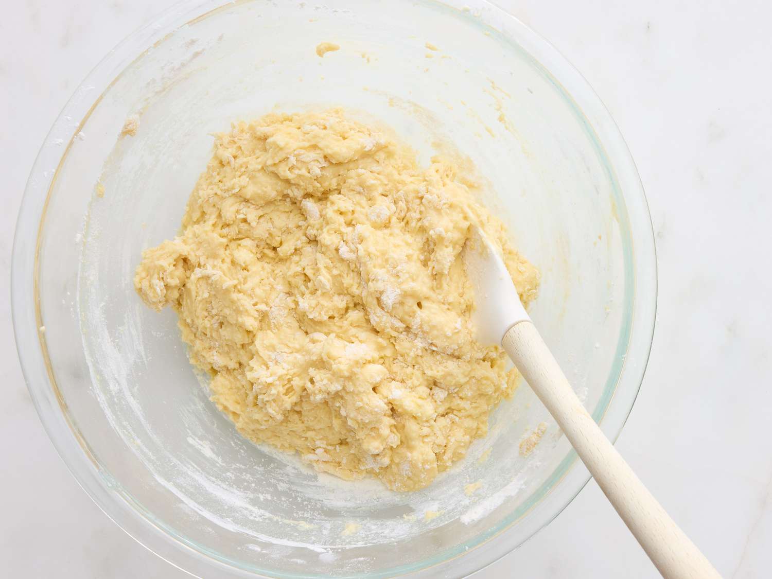 - Step 5:Mix sugar and butter together in a large bowl with a spatula until well blended. Whisk in eggs, one at a time, until thoroughly incorporated. Whisk in sour cream and vanilla. Gradually whisk in flour mixture until flour is just incorporated; do not overmix. Dotdash Meredith Food Studios