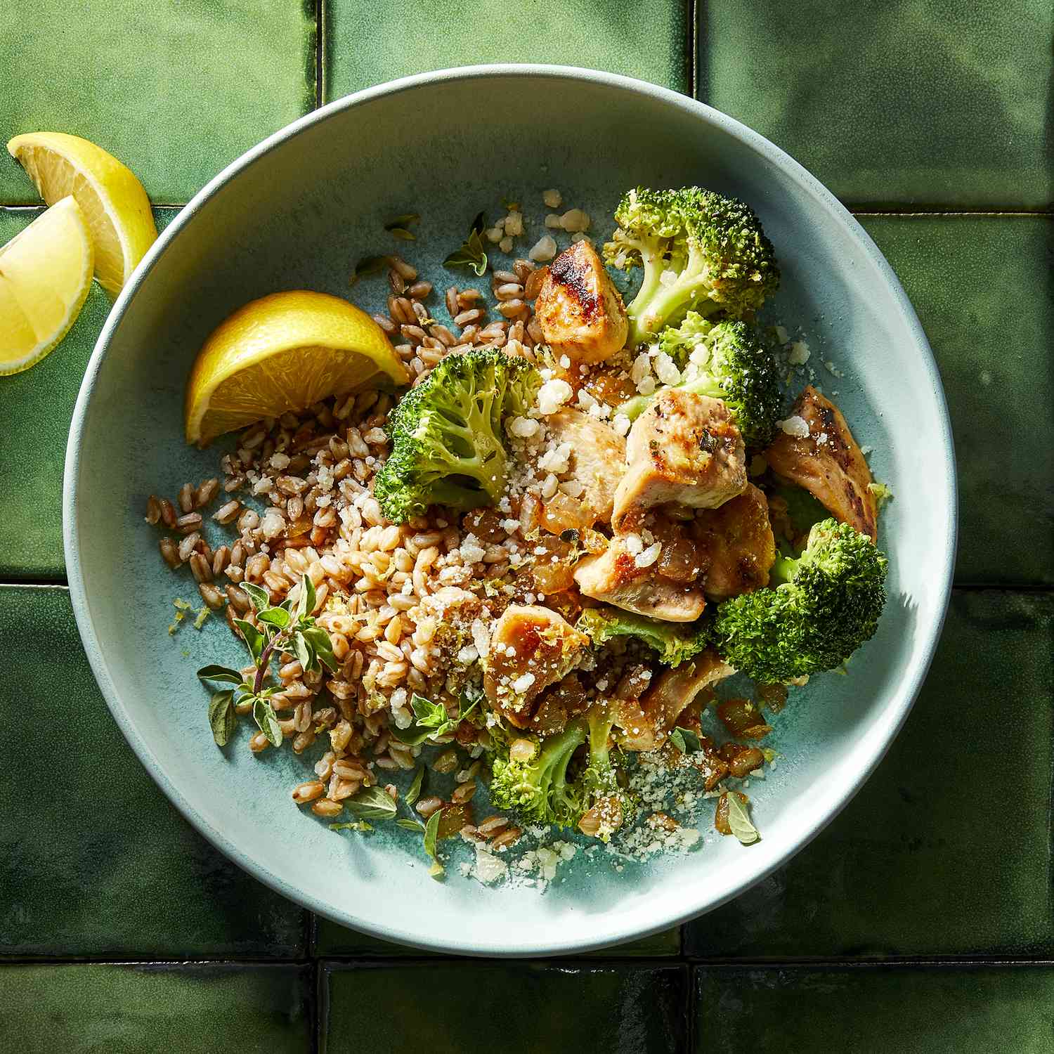 Delicious bowl of chicken, rice, and zesty lemon!